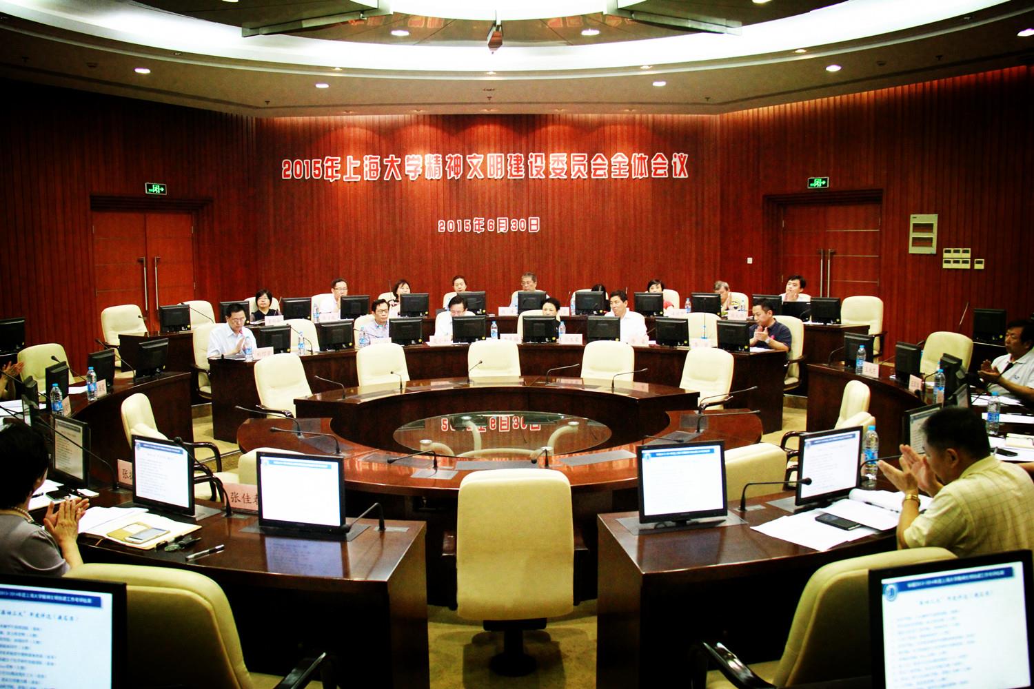 会上,校党委宣传部部长李坚首先向全体委员汇报我校2013-2014年度精神文明创建工作情况及主要成果。学校坚持精神文明建设是“一把手工程、天天工程、人人工程”的创建理念,以培育和践行社会主义核心价值观为根本,将学校精神文明建设与国家经济社会发展相结合,与立德树人的育人目标相结合,与学校的改革发展稳定相结合,与广大师生员工的根本利益相结合,有力提升了全校师生的道德水准和文明素质,推进了学校新一轮的开放合作和快速发展。2015年,学校第10次荣获“上海市文明单位”荣誉称号,并再次被评为“全国文明单位”。