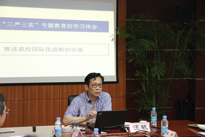 6月18日下午,汪敏副校长为我校第二十三期中青年干部培训班学员讲了题为《践行“三严三实”——推进我校国际化战略实施》的专题教育党课,组织部副部长、党校常务副校长曹为民主持会议。