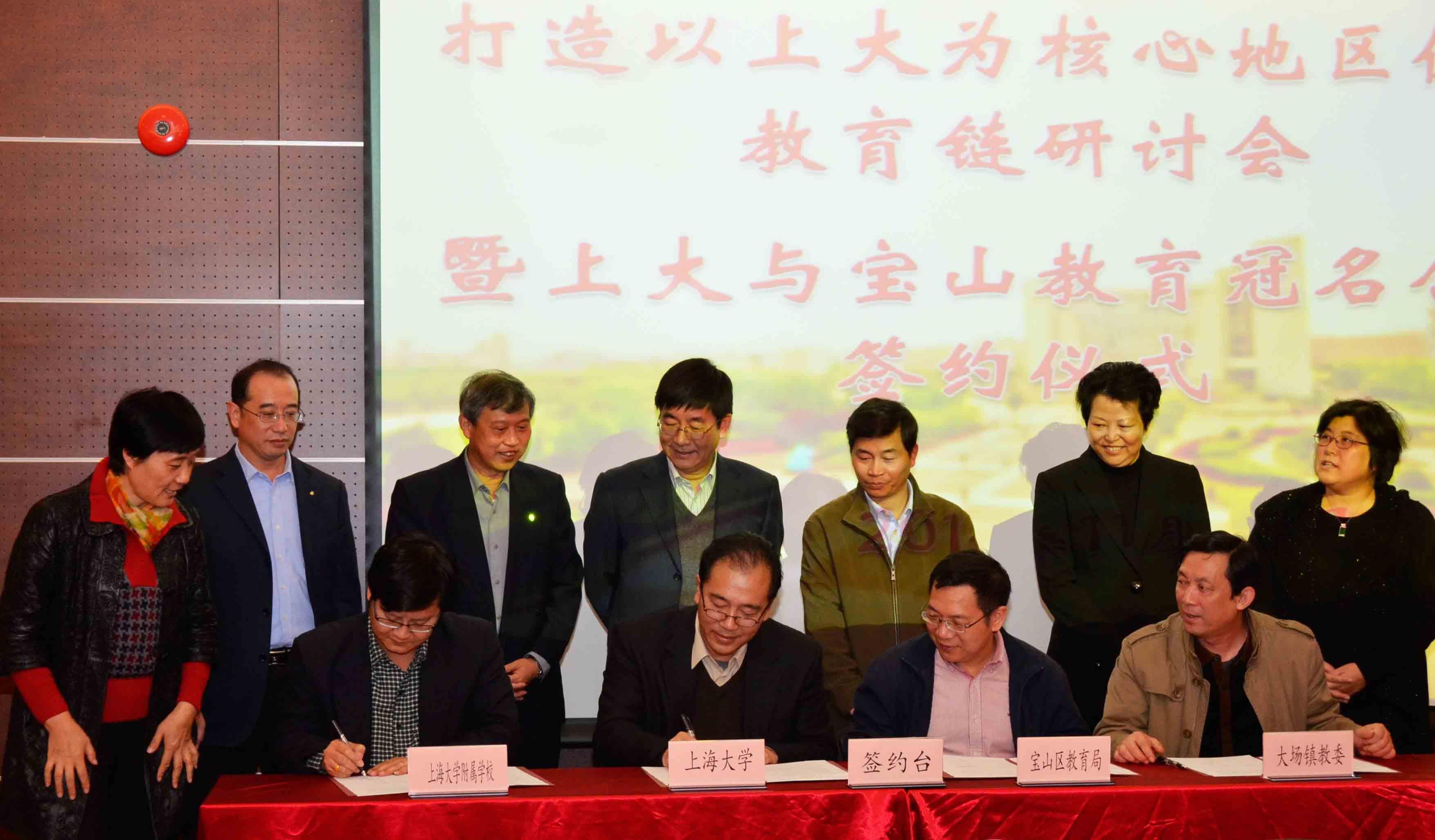 经过近一年的酝酿、协调、筹备与努力,在校工会的大力推动下,我校于2014年11月20日上午9:00,在校本部乐乎新楼思源厅召开了“打造以上大为核心地区优质教育链研讨会暨上大与宝山教育冠名合作签约仪式”。宝山区区委副书记袁鹰、副区长陶夏芳,教育局局长张晓静、副局长陆荣林,大场镇教委主任左忠明等领导以及上大周边的高中、初中、小学、幼儿园的校长、园长共20多人,应邀参加了研讨会。校党委书记于信汇,党委副书记、纪委书记、校工会主席忻平热情接待了他们,并发表了讲话。研讨会由校工会常务副主席姜继平主持。