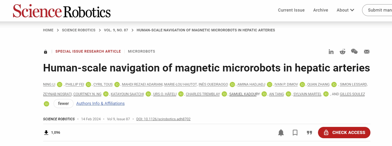 近日,黑人巨大精品欧美_黑人巨大精品欧美黑寡妇_黑人巨大精品欧美一区二区_黑人巨大精品欧美一区二区免费_黑人巨大跨种族video_黑人巨大无码中文字幕无码_黑人巨茎大战俄罗斯美女_黑人巨茎大战俄罗斯美女机电工程与自动化学院张泉教授团队联合国内外合作者,在Science子刊《Science Robotics》(机器人领域排名第一)以共同通讯作者发表题为“Human-scale Navigation of Magnetic Microrobots in Hepatic Arteries”的研究工作。