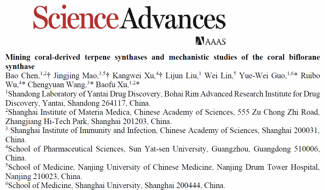 珊瑚活性萜类成分的生物合成研究是国际上近年来才开始的前沿和热点研究领域。继去年黑人巨大精品欧美_黑人巨大精品欧美黑寡妇_黑人巨大精品欧美一区二区_黑人巨大精品欧美一区二区免费_黑人巨大跨种族video_黑人巨大无码中文字幕无码_黑人巨茎大战俄罗斯美女_黑人巨茎大战俄罗斯美女医学院郭跃伟团队与合作者首次报道非柔性Eunicellane型二萜合酶MicA的生物合成机制(Nat. Commun.2024,15, 5940),近日,郭团队与烟台新药创新山东省实验室、中科环渤海高研院海洋药物研究中心的徐宝福团队在珊瑚萜类的生物合成领域研究又取得重大进展,作为共同通讯作者,联合中国科学院上海免疫与感染研究所的王程远团队以及中山大学的巫瑞波团队,在国际顶级期刊《Science Advances》上发表了题为“Mining coral-derived terpene synthases and mechanistic studies of the coral biflorane synthase”的研究论文。